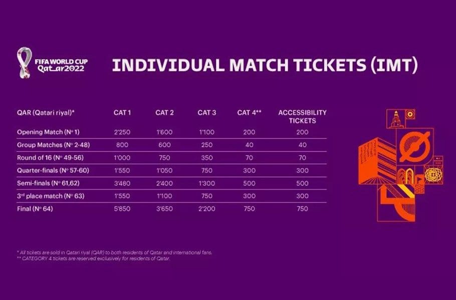 These were the prices for World Cup 2022 tickets in Qatari Riyal (100 QAR = 27 USD):