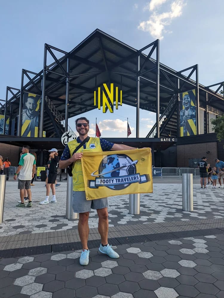 On May 10, match day for Nashville and La Brigada de Oro, the once electric atmosphere of thumping drums, chanting, pre-game tailgates, dancing, grilling, drinking, and parades leading to GEODIS Park – the same routines I so happily witnessed back in August as a Footy Traveler in his element – were nowhere to be found. Not only were the regular vibrant scenes outside the stadium significantly subdued, but inside the cavernous and stunning 30,000+ seat stadium, the absence of large numbers of La Brigada de Oro was palpable.