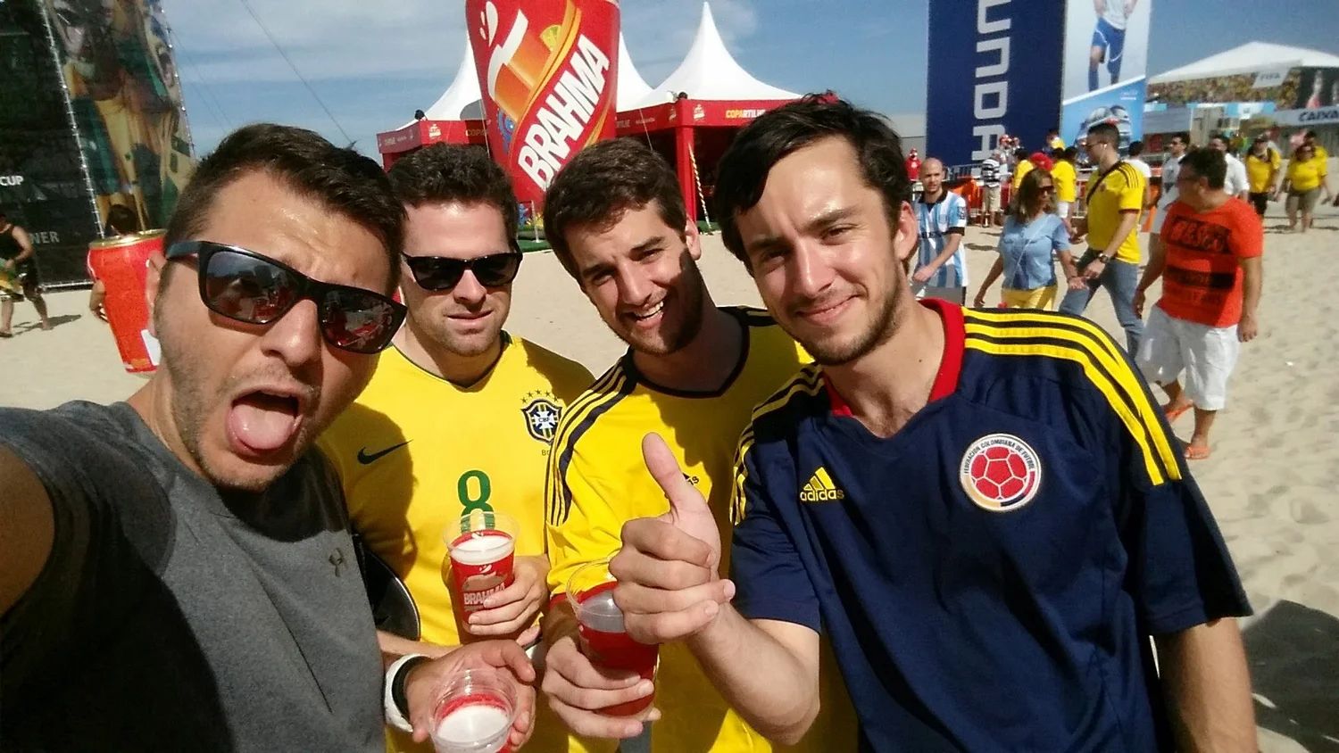 Partying with Colombian fans on Copacabana Beach during Brasil 2014